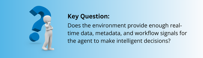 Autonomous agents are only as smart as their situational awareness. Without rich, real-time access to contextual signals – such as database records, process states, customer history, or API access – they cannot reason effectively.
