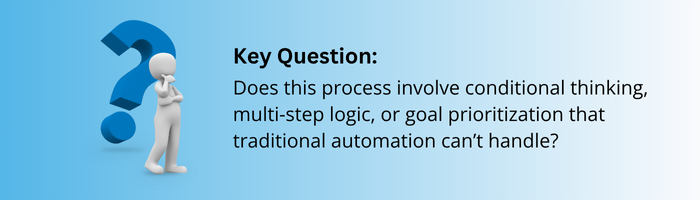 Not every task needs agentic intelligence. Many back-office processes (e.g., data entry, simple report generation) are better suited to RPA or BPM tools. But tasks that involve trade-offs, planning, sequencing, or context-switching are where agentic AI truly shines.