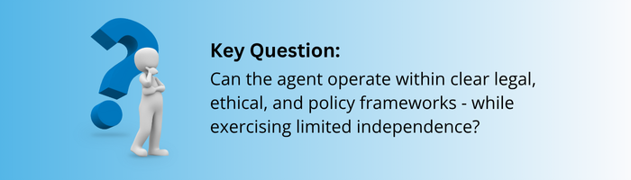 Challenge: Agents that make decisions, especially in regulated sectors like finance, healthcare, or insurance, must comply with policy, ethics, and legal frameworks. Many teams defer this consideration to later phases.