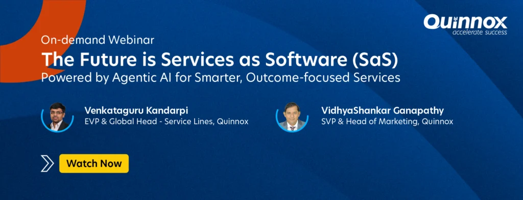 Quinnox’s SaS vision transforms service delivery by embedding AI-driven intelligence across the software lifecycle, turning services into self-improving, outcome-focused solutions.